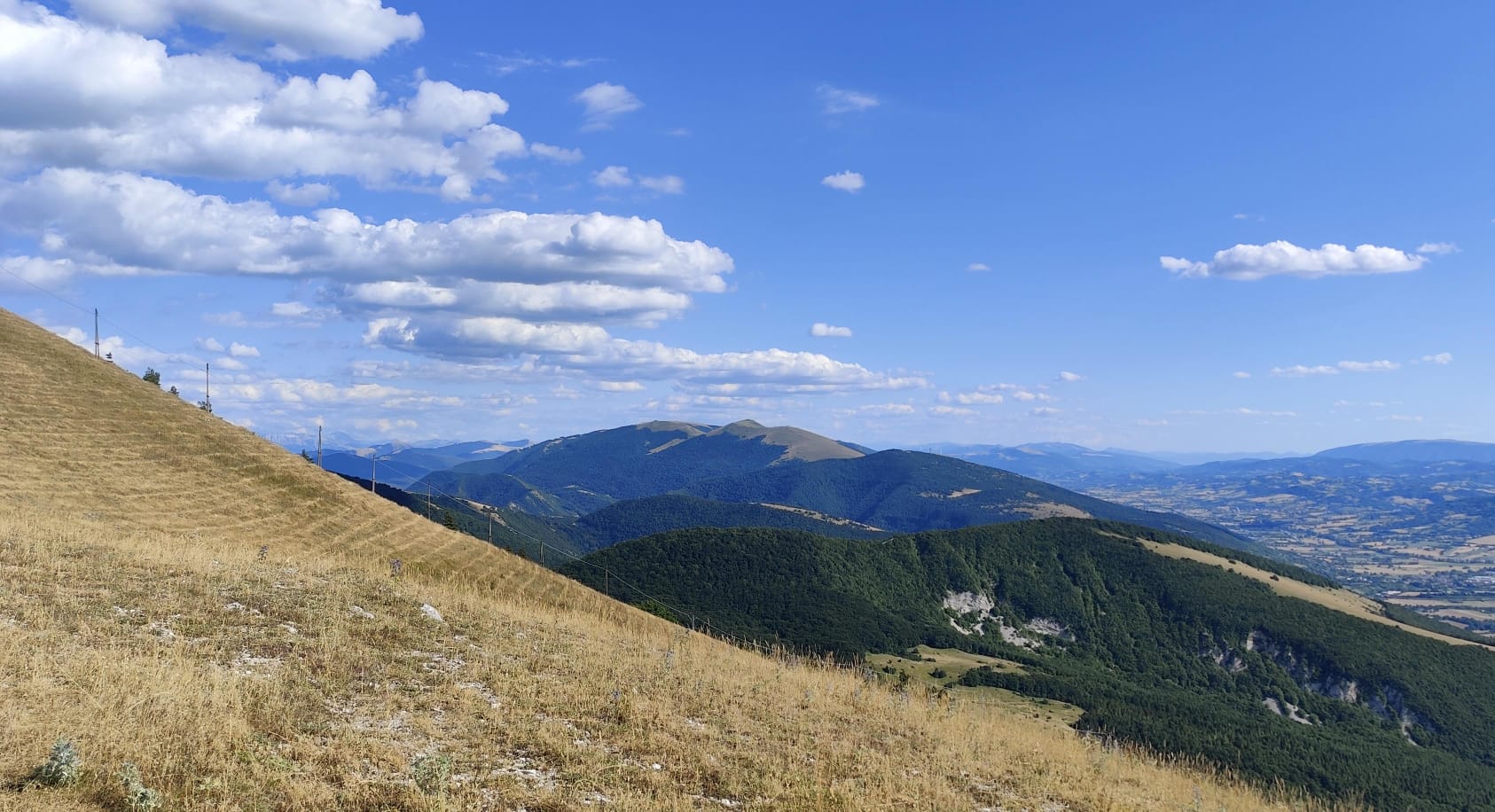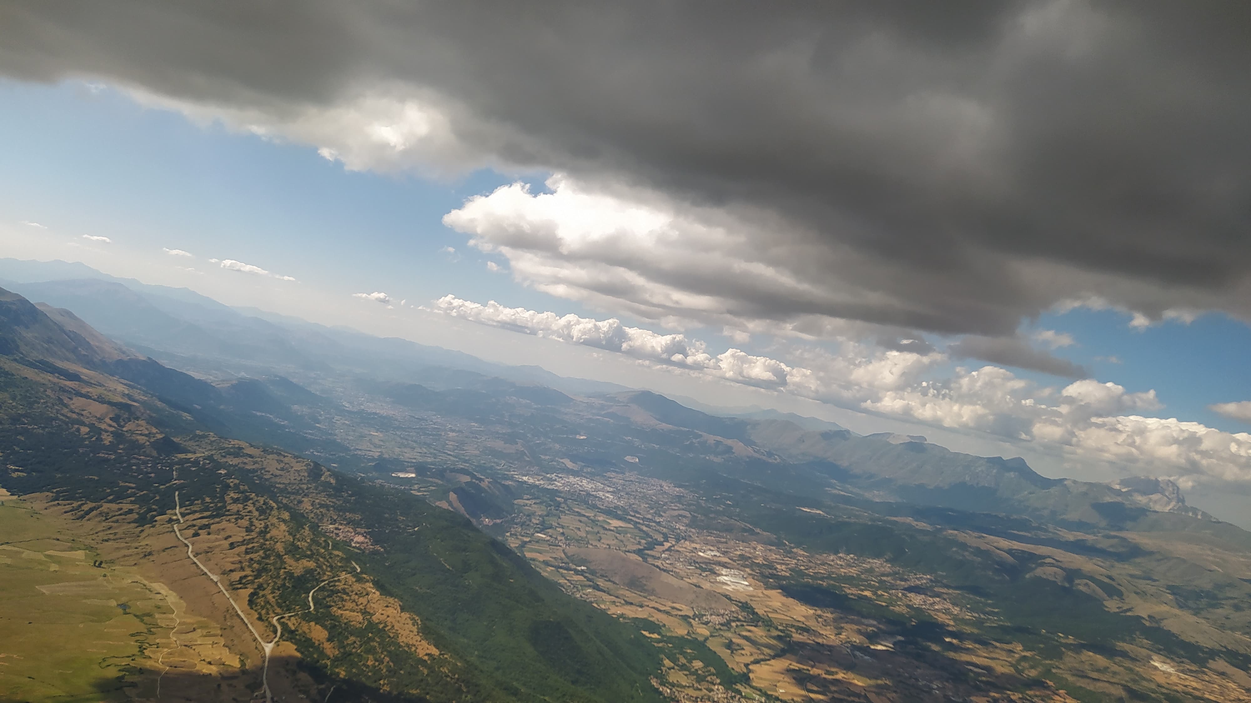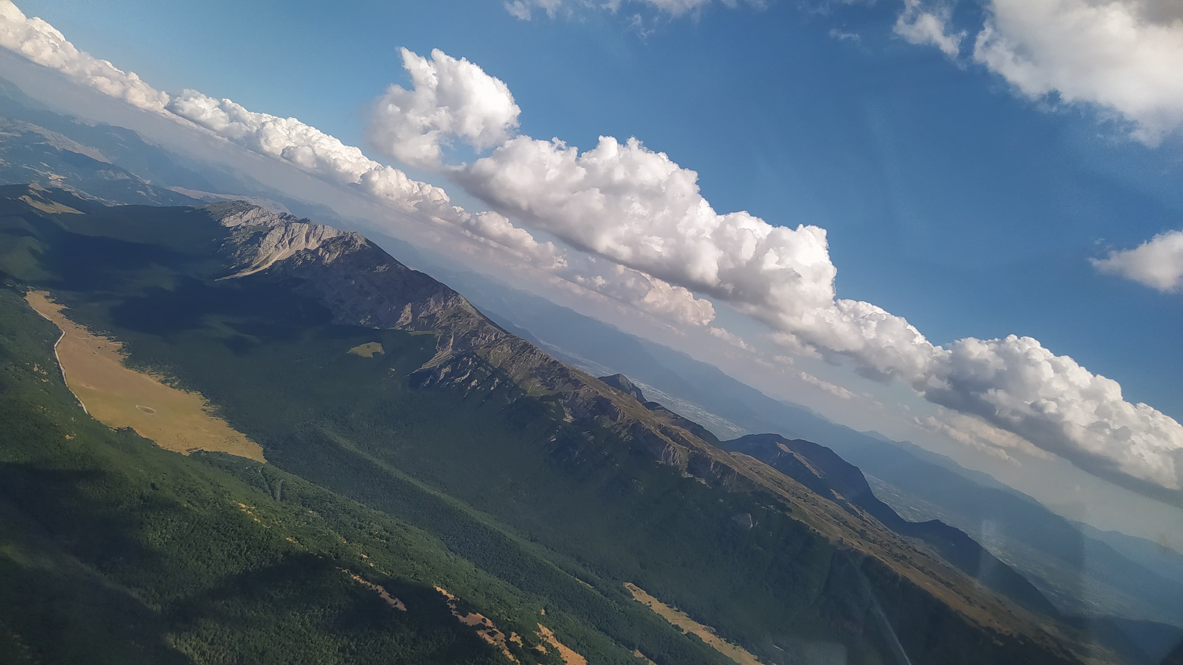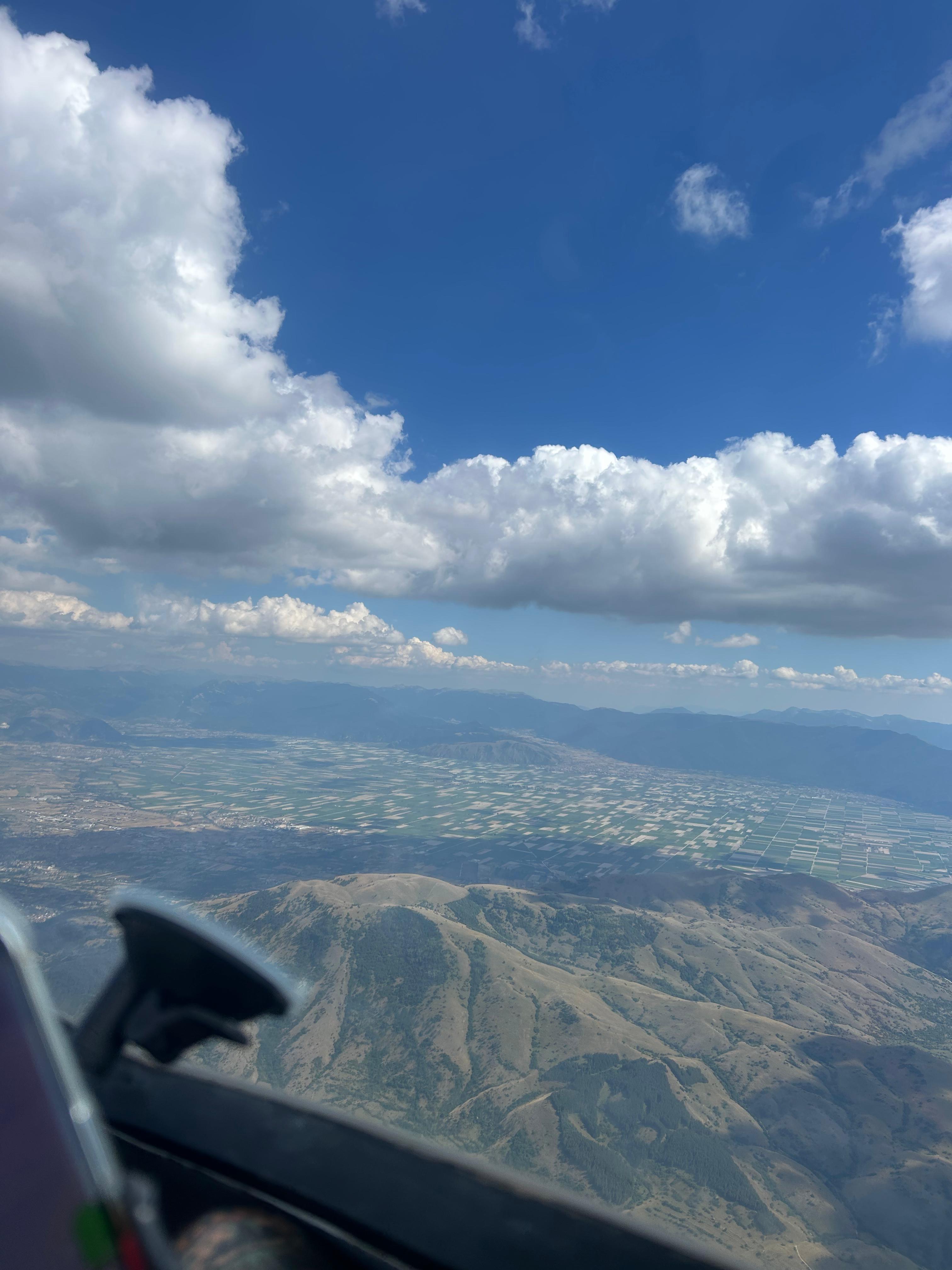 Girando l’angolo abbiamo potuto ammirare la bellezza della piana del Fucino con il suo mosaico di campi coltivati in una bellissima intensità di verde con la sicurezza di avere ai nostri piedi Celano con la sua Aviosuperficie.