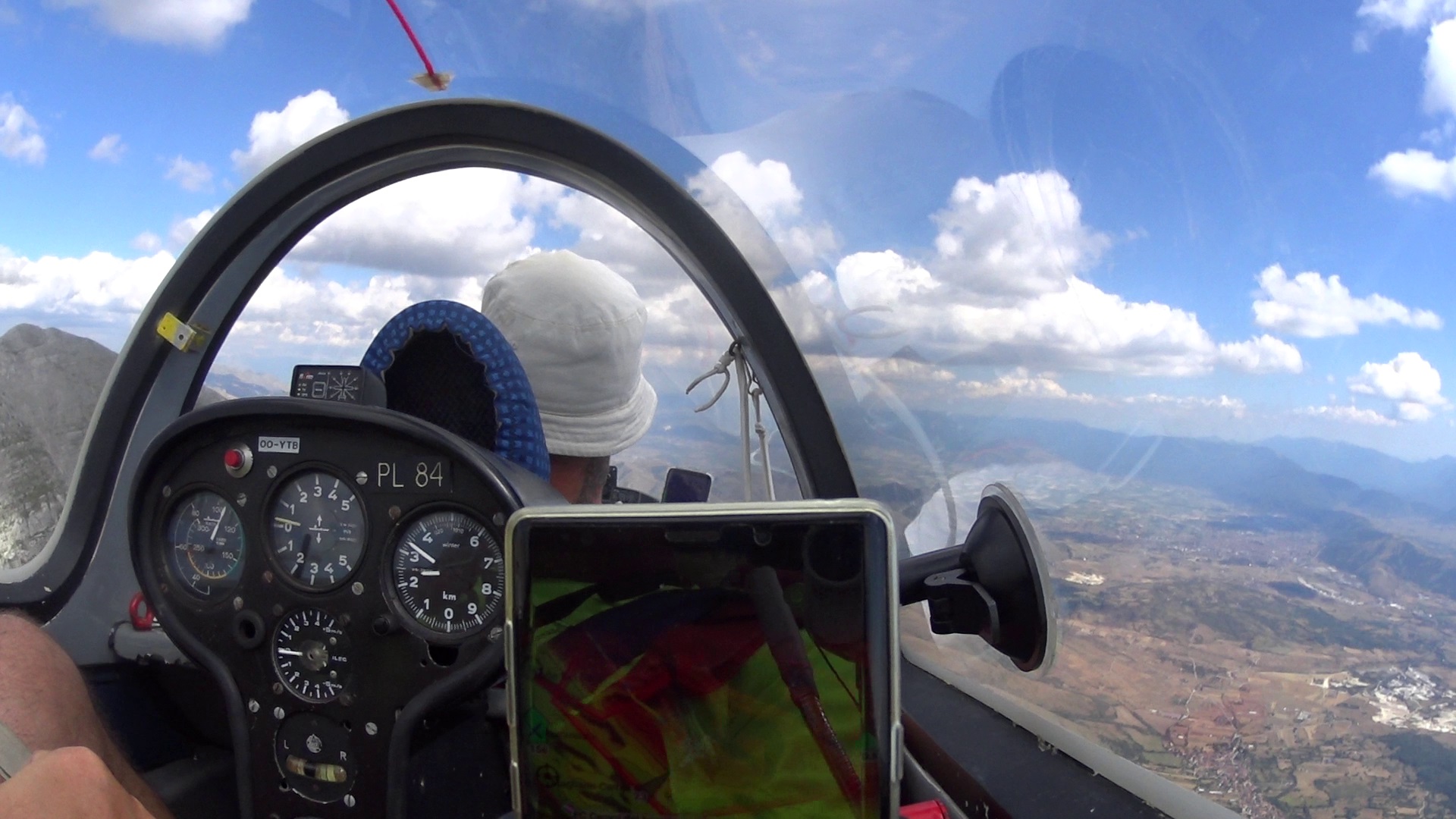 Qualche giorno prima il socio dice che prende il Discus D-0930 TOP, io preso dalla disperazione guardo il parapaendio, dalla disperazione perchè so che c’è troppo vento per lui… ma poi mi ricordo che posso prendere il TwinAstir OhOh-Youtube, eh si ma sto solo, e volare un biposto da soli è un peccato mortale, allora chiamo di corsa il mio amico Massimo, e gli dico, ehi Tu sabato voli con me, e lo prenoto.