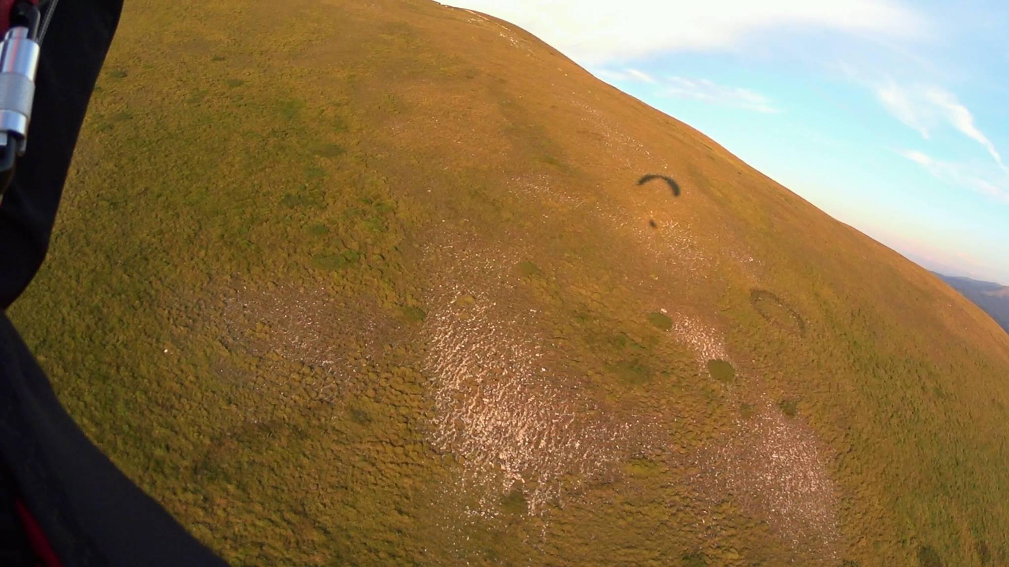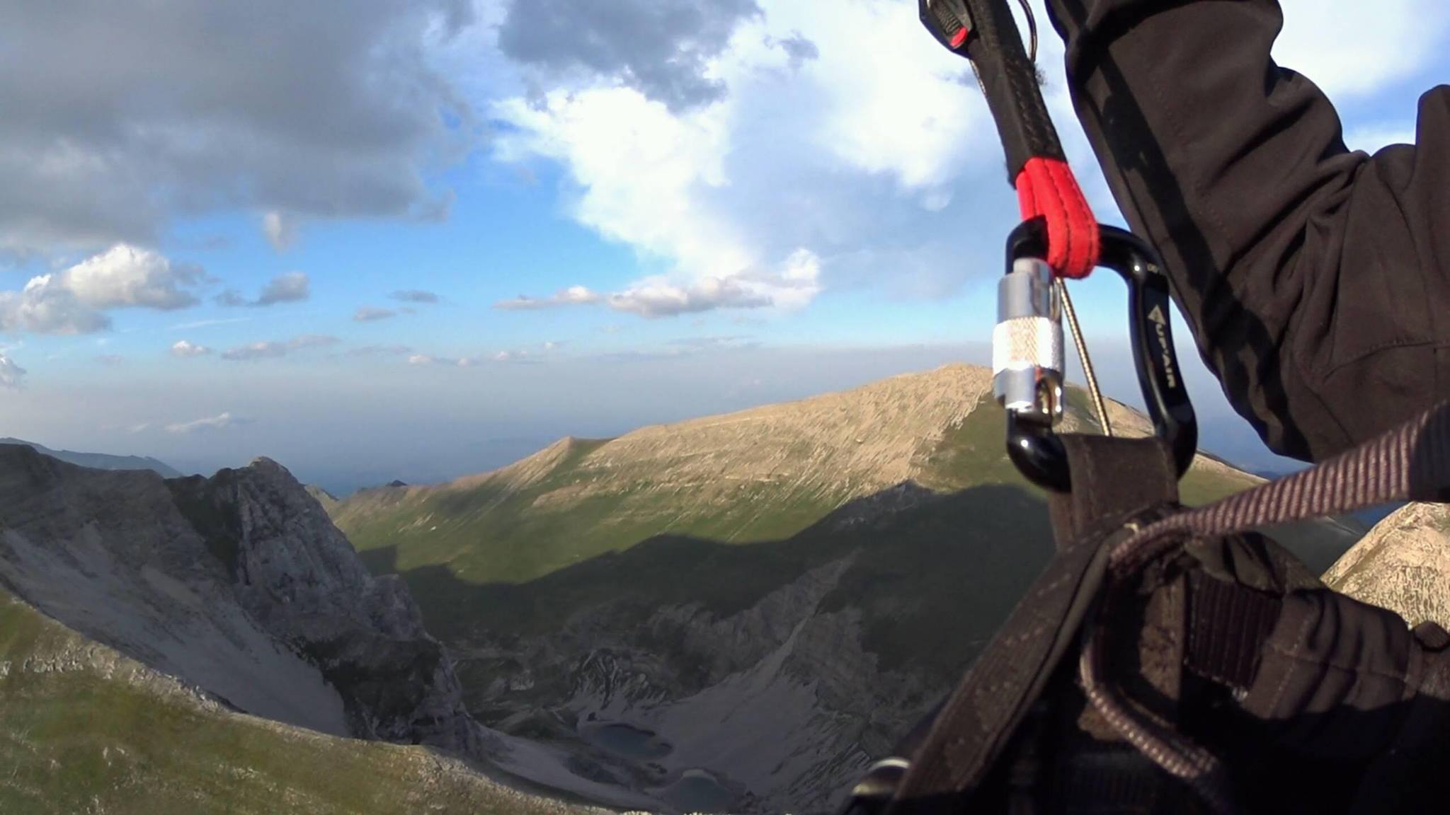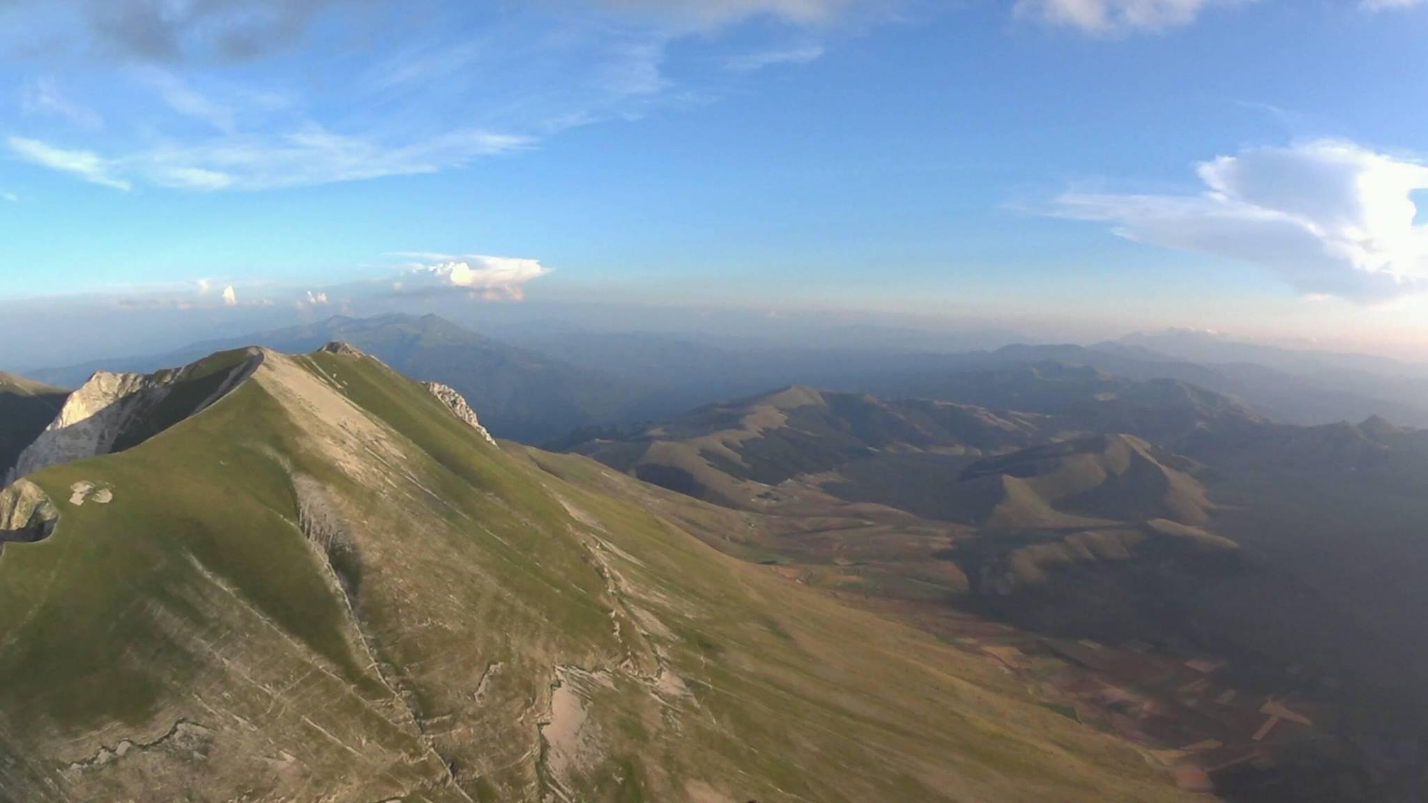 Saluto gli amici in termica e proseguo a sud est, al decollo del cucco sto a 1600, sotto vedo sempre Stefano Venturi che gioca… mammamia non tiene nulla, inoltre trovo delle turbolenze molto forti tanto da farmi chiudere le gambe, pronto a una chiusura da un momento all’altro.. invece la mia fida Kibo ha resisto benissimo, certo pure la scimmia sotto le bretelle un po’ di merito ce l’ha, più di una volta mi sono visto la vela davanti prima e dietro poi, il pilotaggio attivo ha evitato il peggio, vado avanti, passo il lepre e trovo una termichetta che stranamente mi scarroccia a sud.. meglio è proprio quello che mi serve.. supero il vallone davanti a Sigillo a e trovo termica sulla cresta del monte poggio alto, girandola mi ri-scarroccia a nord est, ma i valori sono buoni e val la pena girarla sto a 1440 e mi serve benzina, giro un bel +1.6/2.0 e mi porta rapidamente a quasi 2000 metri e mi sento molto soddisfatto.